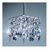 220209mc Finish / Crystals: Matte Chrome /Clear Pictured in gold leaf glass shade Cristello only contains 100pct strass crystals receiving the strass certificate as a symbol for the best crystal stone quality. Next to diamonds and other gemstones the strass crystals in this elegant square chandelier pendant are the most suitable material for light refraction. Light dances when Cristello is illuminated. Features: -Mini pendant. -Cristello collection. -Available in chrome, matte chrome or bronze finishes. -Strass swarovski crystals available in clear, amber or blue colors. -Dimmable. -Suitable for dry location. Specifications: -Input: 12 Volts AC/DC. -Accommodates 50W GY6.35 halogen bulb (not included). -Overall dimensions: 3.1'' H x 3.1'' W x 3.1'' D.